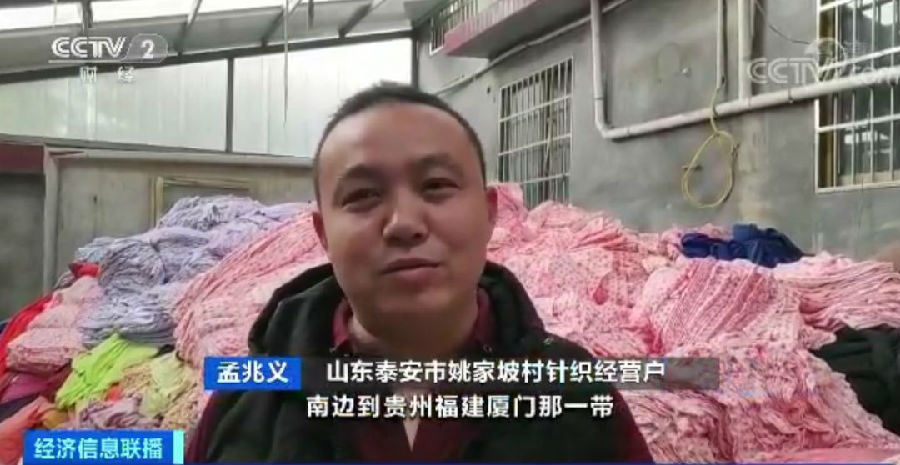 山東泰安市姚家坡村針織經營戶孟兆義:北邊到新疆、內蒙,南邊到貴州、福建、廈門那一帶,基本上你們能想到的城市都有我們的產品。吉爾吉斯斯坦、非洲、印度這些國家基本都有。