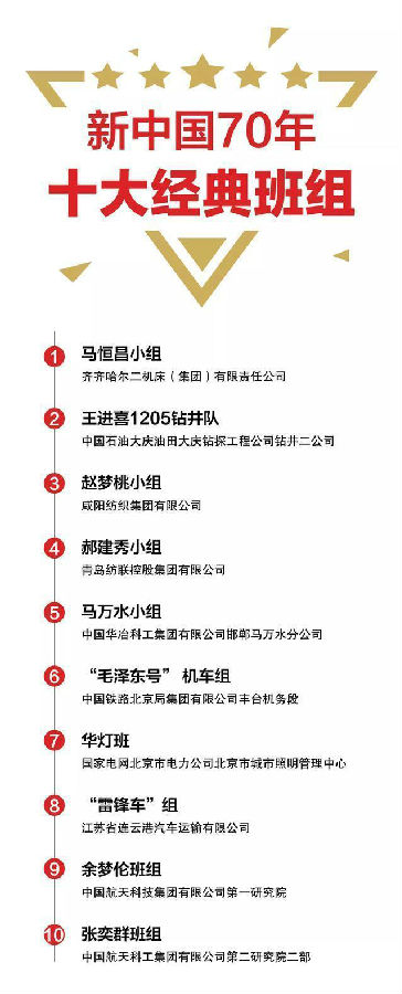 為慶祝新中國成立70周年,尋找、發現、挖掘一批對我國經濟建設發展發揮關鍵作用的班組故事,展示中國工會推進班組建設的不懈努力,今天上午,由中國工人出版社、中國工業報社主辦的“新中國70年最具影響力班組”發布暨第一屆新時代班組高峰論壇活動在京召開。