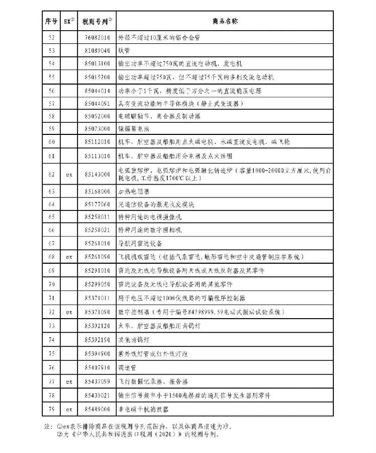 對附件清單所列商品,自2020年5月19日至2021年5月18日(一年),不再加征我為反制美301措施所加征的關稅。對已加征的關稅稅款予以退還,相關進口企業應自排除清單公布之日起6個月內按規定向海關申請辦理。