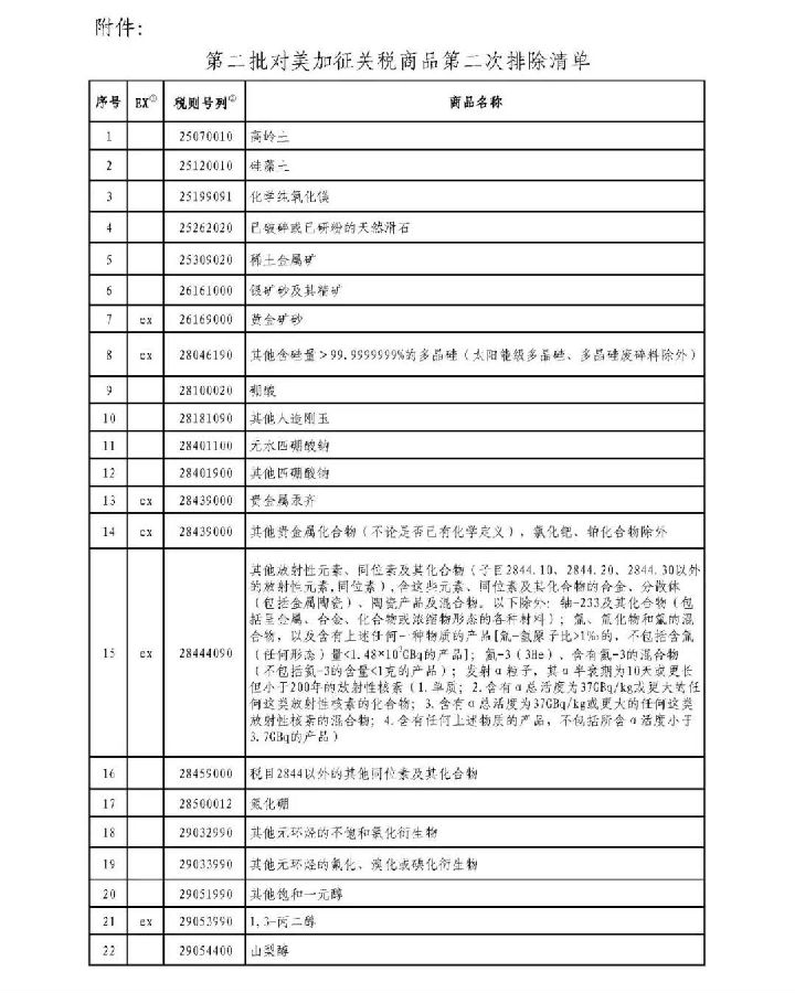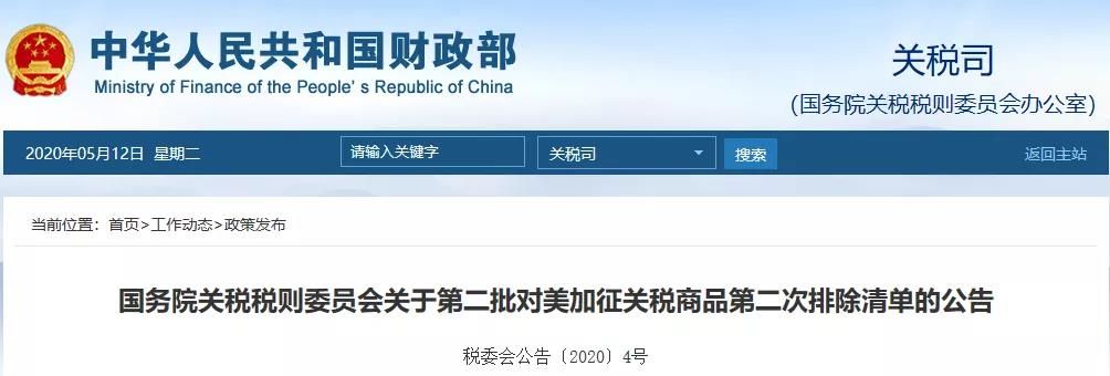 根據《國務院關稅稅則委員會關于試行開展對美加征關稅商品排除工作的公告》(稅委會公告〔2019〕2號),國務院關稅稅則委員會組織對申請主體提出的有效申請進行審核,并按程序決定,對第二批對美加征關稅商品,第二次排除其中部分商品,有關事項公告如下: