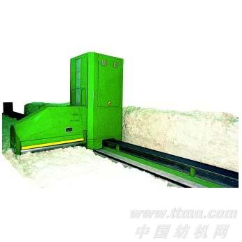 本機作為開清棉機組的第一道工序,適用于抓取各種不同等級的原棉、棉型化纖及76毫米以下的中長纖維。間歇下降的抓棉機打手隨轉塔做往復運動,對棉包做精細抓取。被抓取的棉束被氣流輸送到下一臺開清棉設備做進一步處理。裝有雙鋸齒打手的抓棉臂可上下移動和自動旋轉。