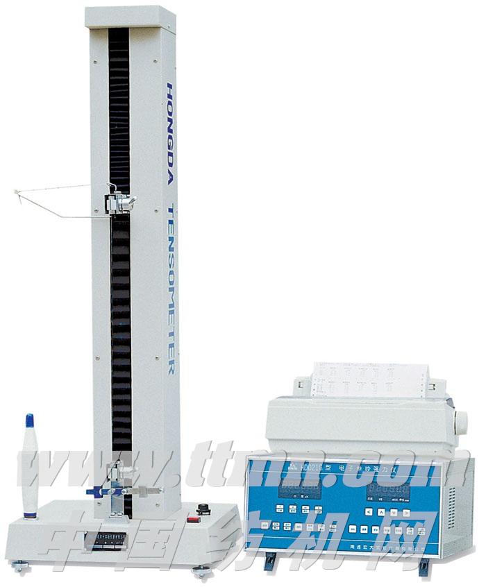 用于測定各種單根纖維的斷裂強力、斷裂伸長率、定伸長負荷、定負荷伸長、蠕變等性能指標。          采用微電腦控制,大屏幕液晶中文菜單顯示,高精度、高速率力值測量系統,智能界面,人機交互對話操作,打印輸出中文報表及曲線圖形。型式:等速伸長(CRE) Used for testing indexes of single fiber, such as breaking tenacity, elongation at break, load at specified elongation, elongation at specified load, creep, etc. Controlled by microcomputer, is a strength testing system of high accuracy and efficiency, displayed by big LCD and Chinese menu, intellective interface, human-machine interactive dialog operation, printer outputs Chinese report forms and figure. Mode: CRE.          適用標準Standards:GB/T14337;GB/T9997;GB/T13835.5;ISO5079;ISO11566;ASTM D3822;BS4029等。 主要技術指標Technical index:            型號Model項目Items YG001N YG004N電動夾持Motor clamper YG001T 量程、精度、分辨率Range, accuracy & resolution 200cN±0.5%,0.01cN 隔距長度 Gauge 5~60mm數字設定 Digital preset 10mm,20mm 最大伸長Max elongation 150mm 拉伸速度Drawing speed 2~100mm/min 5~40mm/min 功能 Functions 定速拉伸,定伸長負荷,定負荷伸長,蠕變等 Draw at specified speed, Load at specified elongation, Elongation at specified load, Creep, etc. 定速拉伸 Draw at specified speed 外形尺寸Dimensions(L×W×H) 主機Main machine:350×250×520mm控制箱Control box:410×360×200mm 電源 Power supply AC220V