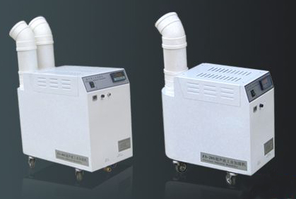 該機型主機及使用性能同于手推移動式,所不同的是增加了自動旋轉 120 °和自動水循環系統,使加濕器加濕范圍更大、更均勻,設計合理的水循環系統使霧化器的回水充分再利用而不會使其落在地面上。安裝簡單、方便、接通電源、水源即可開機,無需其它動力。最適用于棉紡、毛紡、麻制品、卷煙及農業等大面積工作場所。