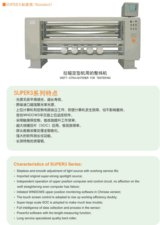 本機對色織、毛麻、絲綢等行業(yè)各種原料的紗線從高支高密至低支低密甚至高支低密的特殊要求產(chǎn)品的工藝適應(yīng)力強,通用性好。該機全電腦控制,設(shè)計合理,結(jié)構(gòu)緊湊。技術(shù)先進,性能穩(wěn)定、可靠,是各種劍桿、片梭、噴氣織機的良好配套設(shè)備,是替代進口的最佳選擇。