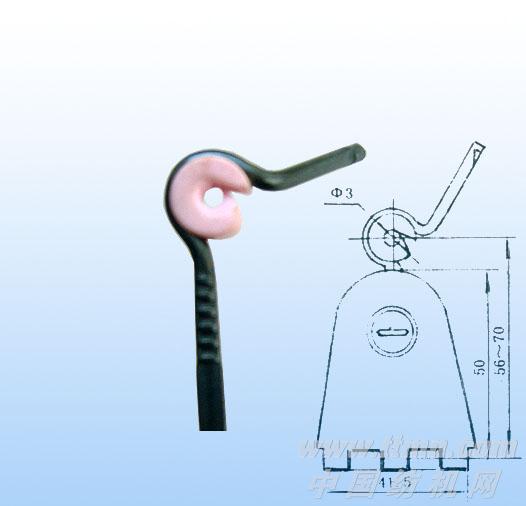 該產品是我公司今年研制和開發的一種新型高耐磨導紗鉤,已經眾多紡織企業使用,深受好評。該導紗鉤采用進口材料¢3.6 Nicr17制造,過紗孔徑為¢2.2,在使用最先進的研磨劑研磨后,導紗鉤內徑光滑,毛羽和斷頭大大減少,從而達到節約勞動時間、提高紗的質量的良好效益。