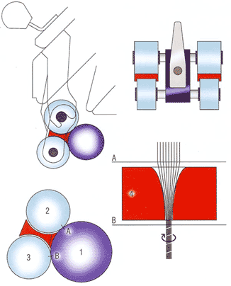 RoCoS緊密紡裝置結構簡單、使用可靠,效果明顯優于傳統環錠紡紗,也克服了氣流集聚型緊密紡裝置的諸多缺點,但RoCoS緊密紡裝置安裝定位難度較大,因為磁鐵陶瓷積聚器安裝在間隙很小的牽伸和輸出膠輥之間,前后位移量很小,如果安裝位置不準確磁鐵陶瓷材料的積聚器就會磨損膠輥,影響膠輥的使用壽命和成紗質量;再者就是干擾牽伸,因為牽伸和輸出膠輥都安裝在前羅拉上中間還加一個積聚器,牽伸膠輥不能前沖還要后退,后移的牽伸膠輥就會干擾正常牽伸,影響條干。