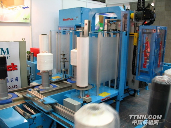 由臺(tái)灣天珩機(jī)械股份有限公司生產(chǎn)的智能全自動(dòng)筒紗打包(成箱)機(jī)系統(tǒng)首次在本屆紡展會(huì)亮相,演示過(guò)程深受好評(píng)。