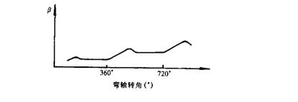 (2)布面游動較大,容易造成斷邊紗。這是由于卷取鉤2拉動棘輪到達終點之前,保持棘爪4早已落下,造成保持棘爪與棘輪齒根間有一間隙。當卷取鉤作反向運動時,棘輪因織物張力而倒轉一個角度,于是卷取輥3的卷取運動有圖10-5所示的正反游動特征。