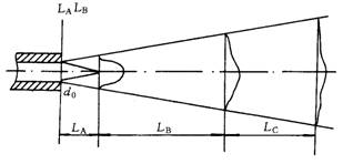 (1)LA:被稱為初始段,這一段的長度就是核心區的長度,因此在初始段內的軸線上,各點的流速相等,等于水流噴出的速度。