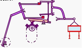電磁鐵失電時(shí),一只拉鉤被下拉鉤鉤住,在上拉刀作用下,滑輪組下移