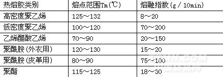 粘合的最佳潤濕條件是γs≌γL,若γL>γs潤濕就不易進行,表2是各種纖維和熱熔膠的表張力。