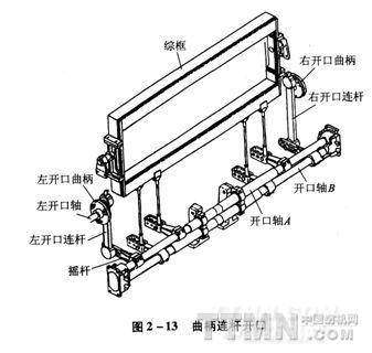 開口機(jī)構(gòu)是織機(jī)五大機(jī)構(gòu)之一,是形成織物所必需的重要機(jī)構(gòu)。它的任務(wù)是根據(jù)織物組織的要求,依次將穿入各頁(yè)綜框上的經(jīng)紗分成上下兩層以形成梭口,待緯紗引入后將梭口閉合,使經(jīng)、緯紗形成交織狀。