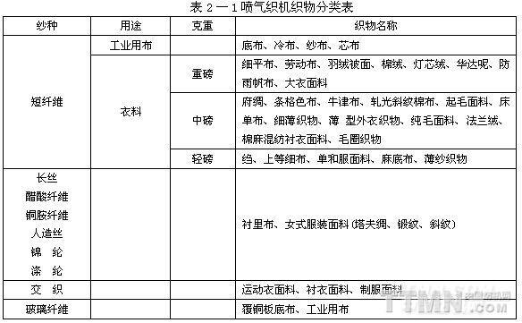 噴氣織機(jī)織造范圍見圖2—1。噴氣織機(jī)織物分類見表2—1。