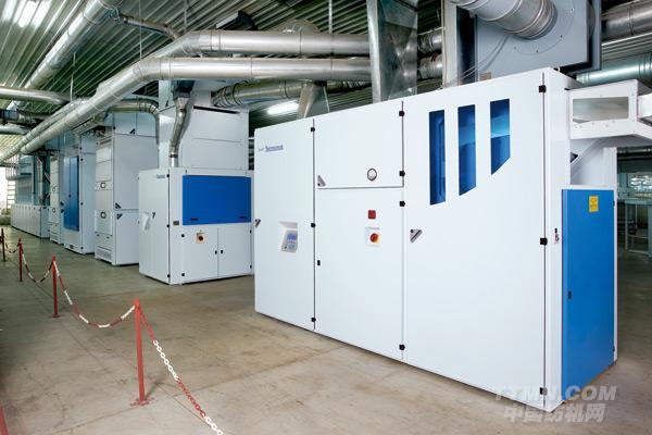 前紡的最優化工序中包括特呂茨勒提供的一整套低纖維損失率的模塊化異物檢測和安全分離系統。系統由兩部分組成:位于清棉線起始處的金屬、重物和燃燒物料分離裝置,以及位于清棉線末端的異物(異纖)分離裝置。特呂茨勒機器的廣泛適用性使其能為每條生產線提供適合的配置.