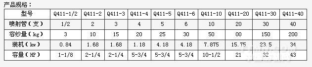 * 容紗量:以噴管內(nèi)凈掛紗長(zhǎng)度為960mm標(biāo)準(zhǔn)為5kg/管