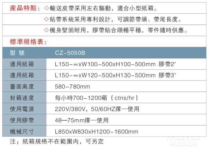 您所在的位置:紡機網(wǎng) >> 正洲包裝機械(東莞)有限公司 >> CZ-5050B 自動封箱機