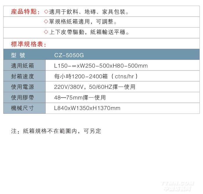 您所在的位置:紡機網 >> 正洲包裝機械(東莞)有限公司 >> CZ-5050G 自動側式封箱機