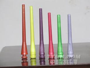 特點:具有耐高溫.抗沖擊.抗彎;適合每分鐘18000轉的高速運轉不變形,不斷紗.不跳管;表面光滑,色澤鮮艷等特點.并適應T/C或T/R蒸紗工藝,有彩頭型.鋸齒線條.圓弧線條等形式.