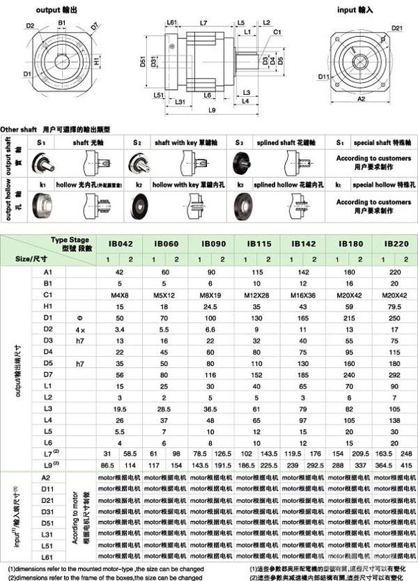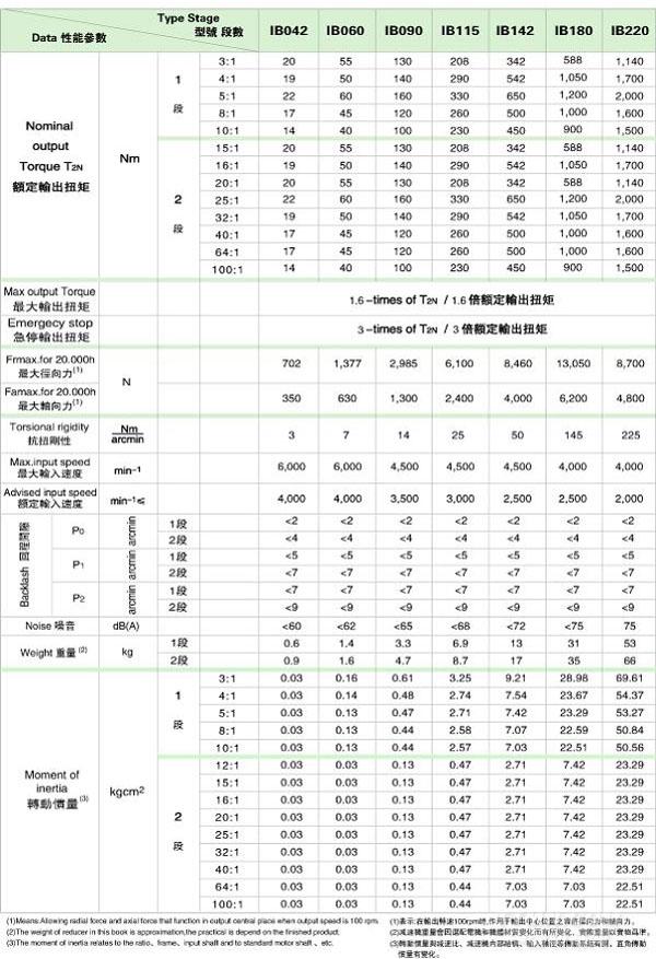 IB 系列精密行星減速機技術參數