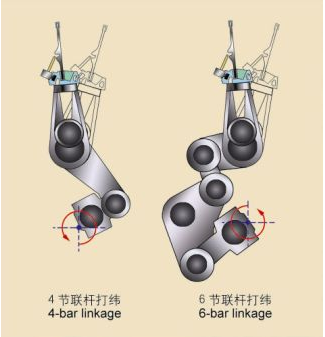 采用實心搖軸、中間多點支撐、筘座托腳輕量化的結構,能更好地適應高張力、高密度的中厚重織物。窄幅織造中采用適應高速的四連桿打緯結構,寬幅織造中采用引緯時間充裕的六連桿打緯結構,從而實現穩定的投緯。