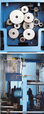 7、 自動定量滴油潤滑系統為每一對牽伸嚙合傳動中的齒輪提供了適宜的潤滑環境,滴油量大小可根據紡紗參數調整,合理省油。