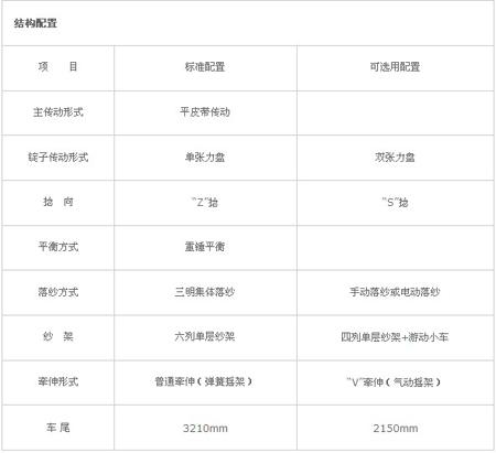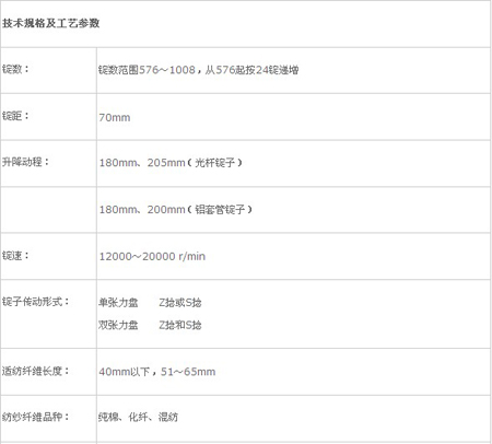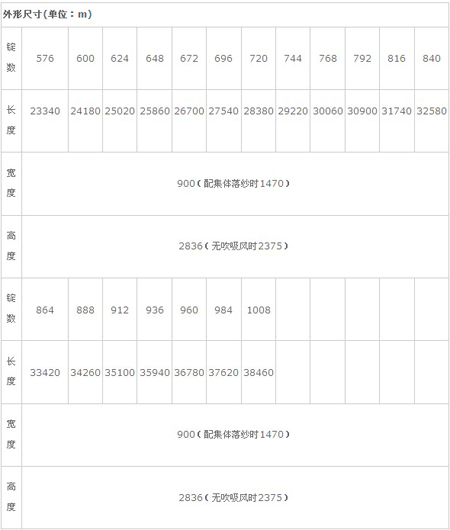 以上長度不包括集體落紗的長度,如配集體落紗時以上表格中各錠長度+1270mm。