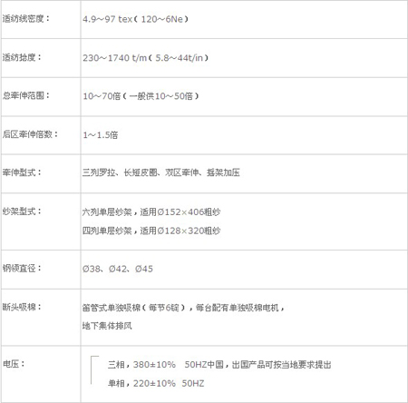 本機用于棉及棉型纖維的純紡或混紡的細紗工序。