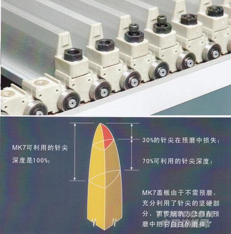 MK7蓋板由于不需預磨,充分利用了針尖的堅硬部分,而傳統的方法則在預磨中把它白白的磨掉了。