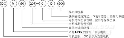 DCM57xxx-500為法蘭連接的帶500線編碼器的電機,如DCM57202-500、DCM57205-500