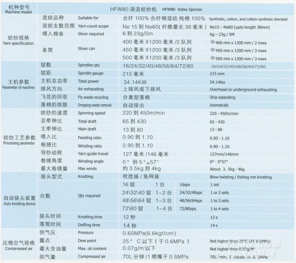 HFW80渦流紡紗機