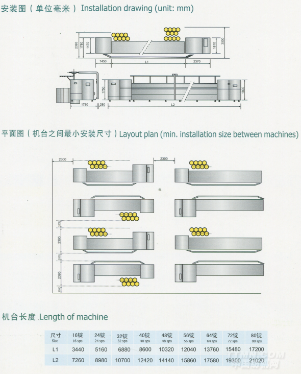 以1萬紗錠為例,對設(shè)備占地面積,設(shè)備配置,檔車工人數(shù),保全工數(shù)和能耗等項目來比較。