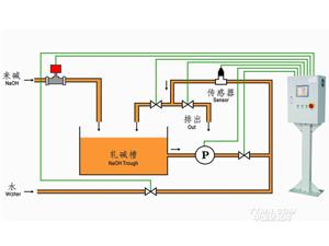 本系統(tǒng)適用于染前處理的退漿、煮練和絲光水洗后落堿的堿濃度測量控制,對堿液濃度進行在線檢測及連續(xù)控制,使堿液濃度穩(wěn)定在工藝要求的范圍內(nèi)。