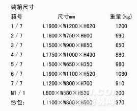 用途 本機用于將20個小紗包(L310*W230*H180mm)或20匹布打包成形。 主要規格與技術參數 1、型式:三梁四柱液壓式 2、上下鐵盤最大距離:1100mm 3、起落盤最大行程:800mm 4、壓縮后高度:400mm 5、起落盤可使用面積:1300*810mm 6、上下鐵盤有效面積:940*540mm 7、捆包槽數:4道 8、最大壓力:75T 9、外形尺寸:L1970*W900*H2365(地面以下1900mm) 10、機器重量:6.8T 11、電動機:FX-180M-4 17KW 一臺